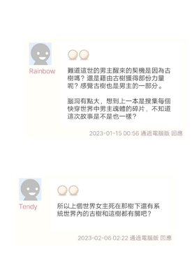 難道這世的男主醒來的契機是因為古樹嗎?還是藉由古樹獲得部份力量呢?感覺古樹也是男主的一部分。