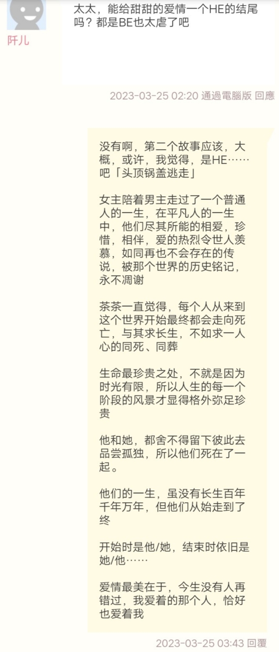太太,能给甜甜的爱情一个HE的结尾吗?都是BE也太虐了吧